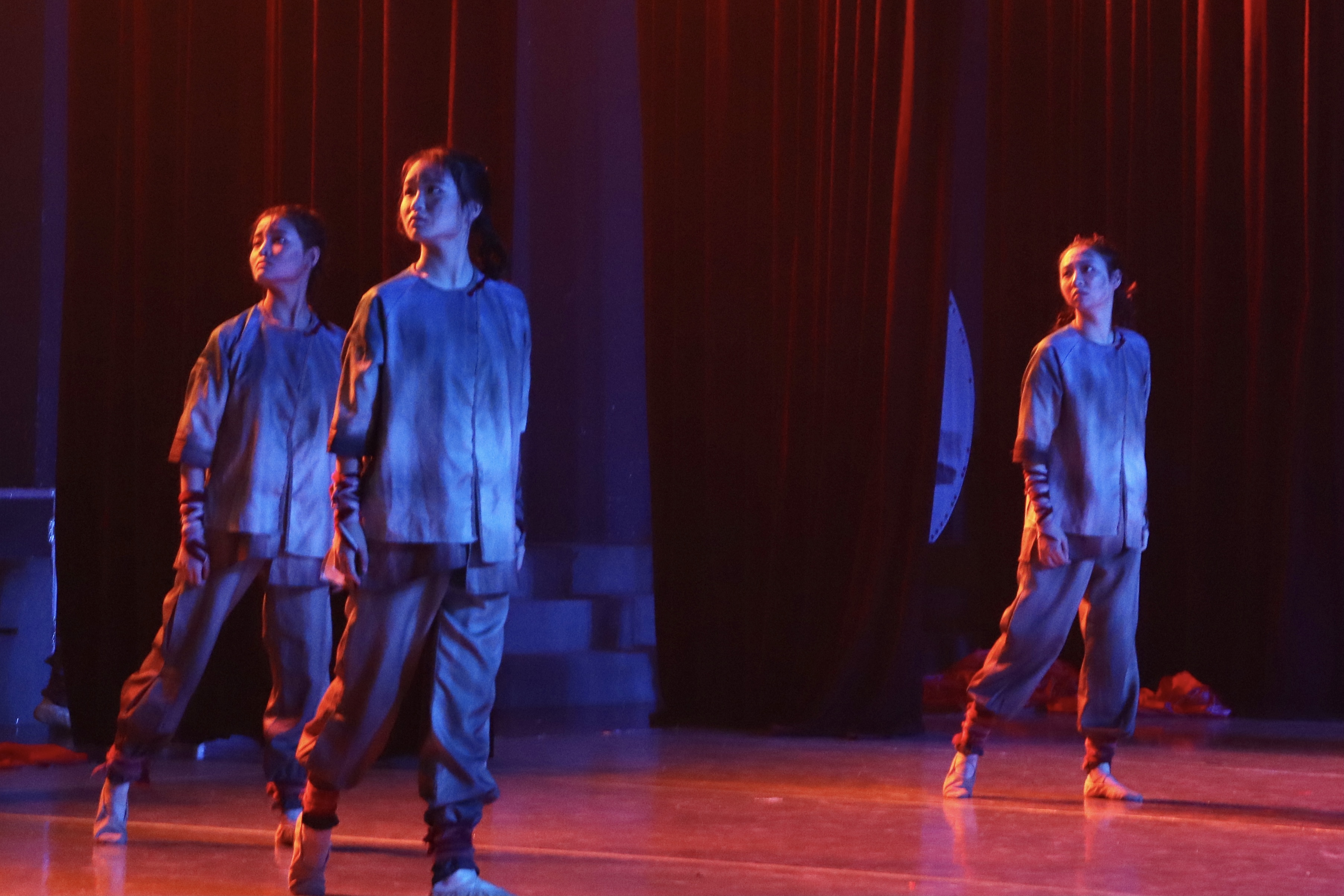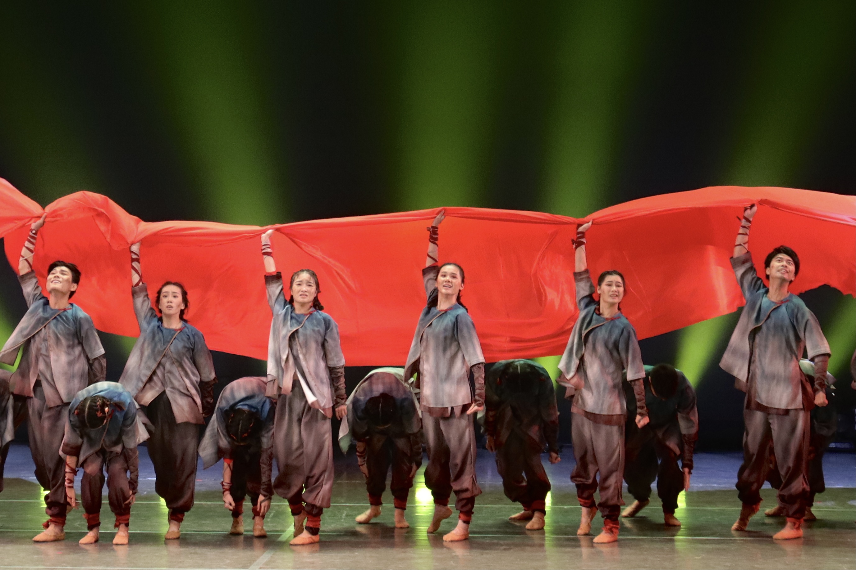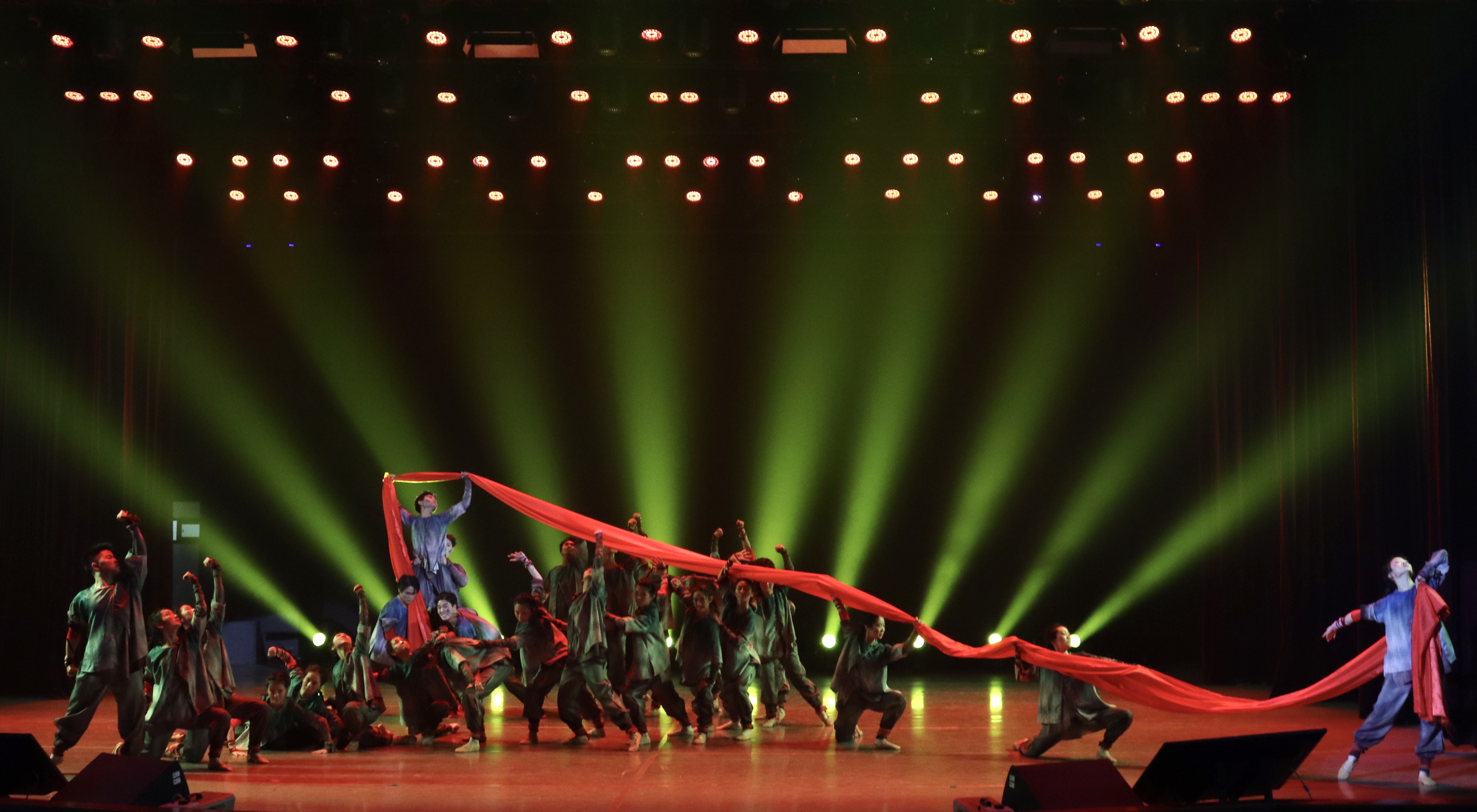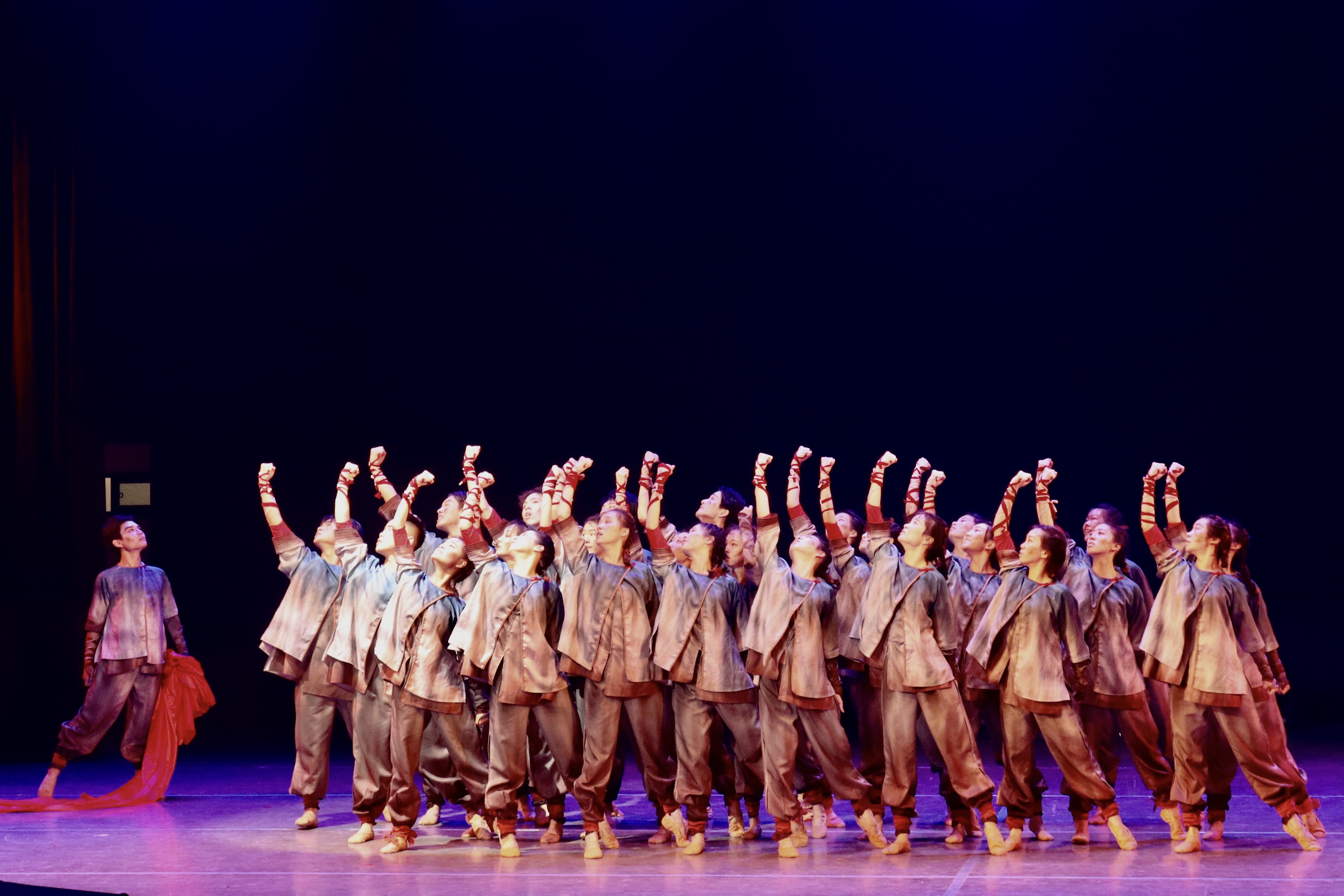 由我校张强老师编导、指导,经过反复打磨、层层选拔的原创舞蹈《东方欲晓》,通过我校舞蹈艺术团同学们的动情演绎,生动展现了一百年前中国百姓在黑暗深渊中受尽压迫,逐渐觉醒,奋起抗争,前赴后继,历经无数失败,终于在关键时期,中国共产党给旧中国带来了希望和光明,为中国的抗战指明了一条道路,深刻改变了中国革命面貌的图景。