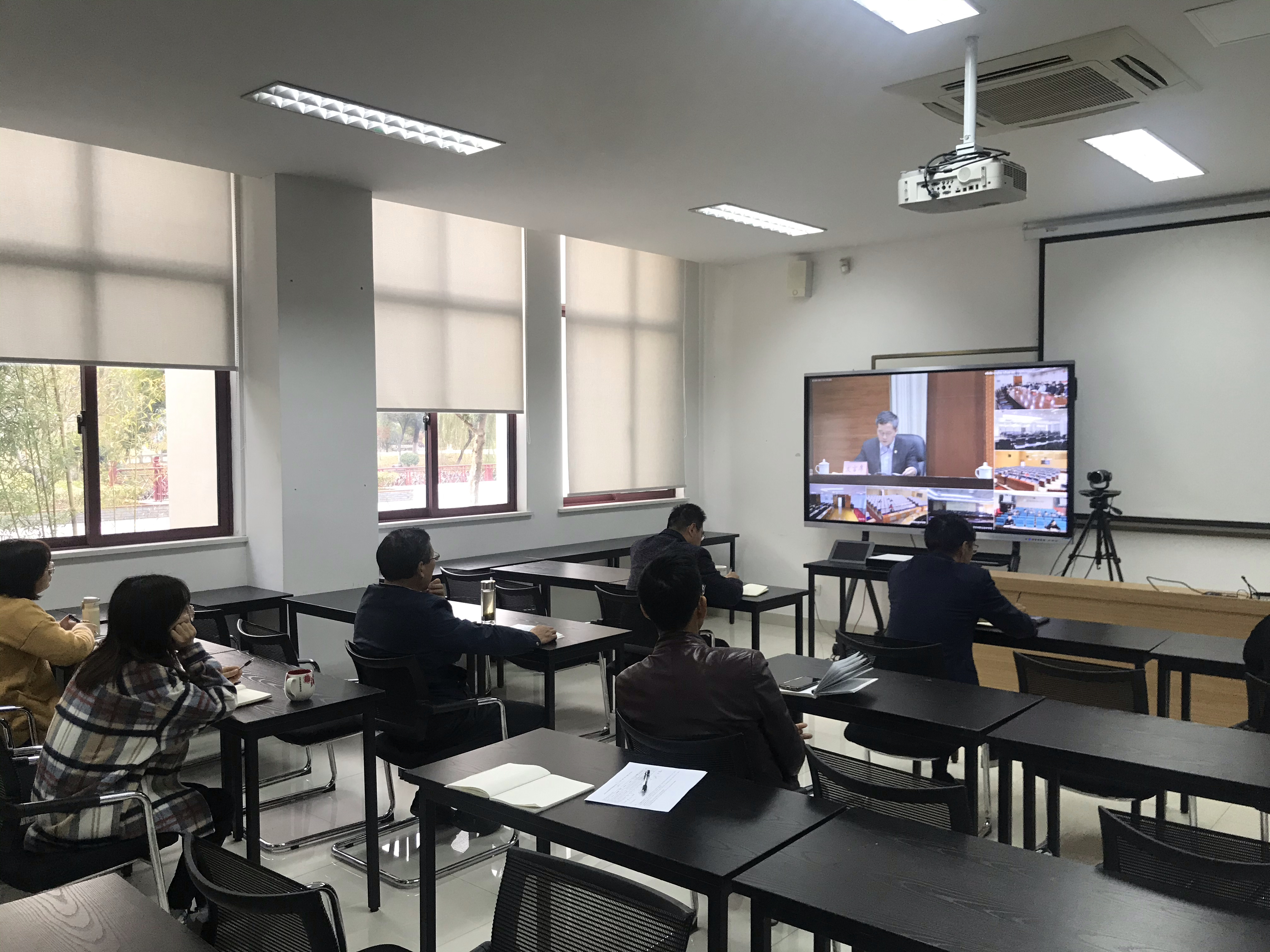 2020年11月11日下午,我校杨建良校长、吕虹副校长、陶华山副校长、办公室、纪检监察室、后勤处、财务处等相关部门人员在党员活动室收看全省教育系统内部审计工作视频会。