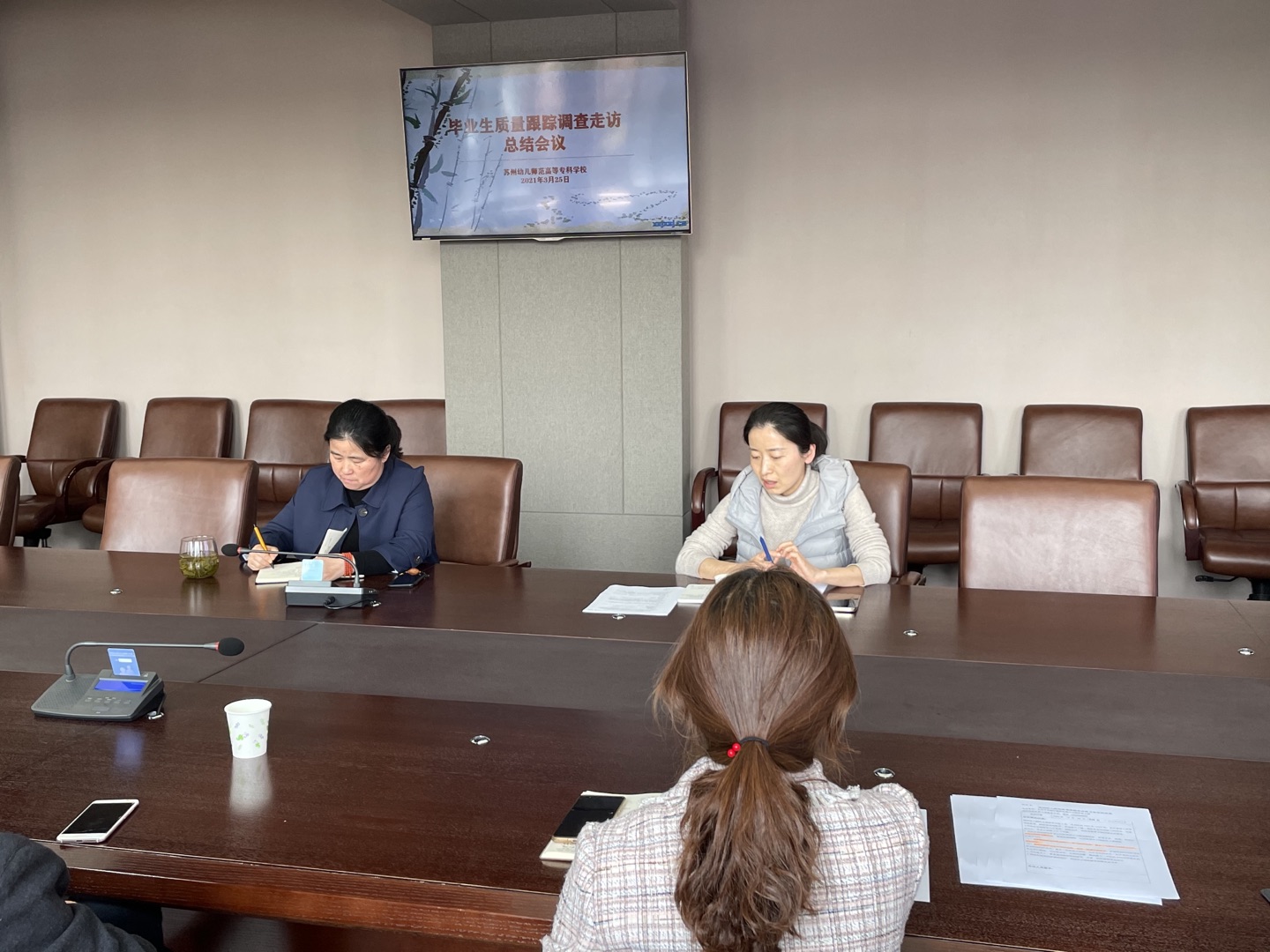 2021年3月10日(直属、姑苏区、吴江、相城、吴中、高新区、工业园区地区走访人员)和3月25日(昆山、太仓、常熟、张家港及外市走访人员参加),学校分两次召开了毕业生质量跟踪调查走访总结会议。大家表达了走访过程中感受到的园方热情接待和毕业生对母校的深厚感情,也交流分享了走访情况。