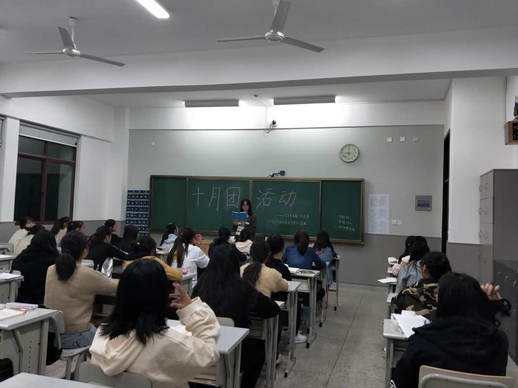 组织委员李杨上台发表了她的读后感,她对于习近平的读书经历与读书心得方面感触尤其的深刻。同时也提出了自己对于读书的看法,感受习主席的文化气息。