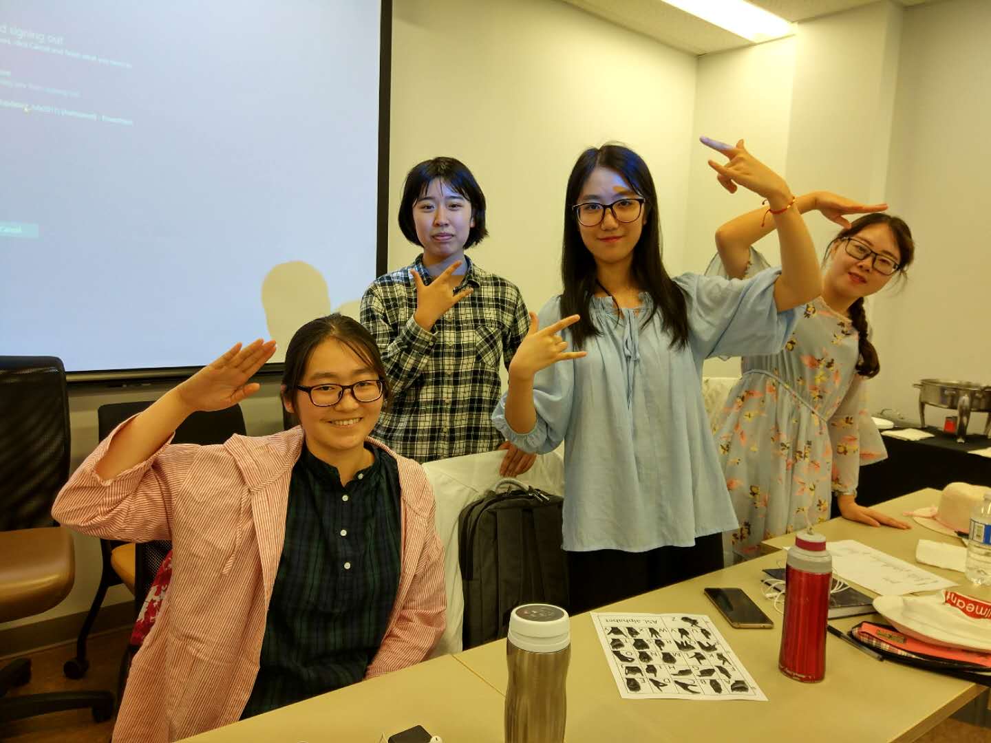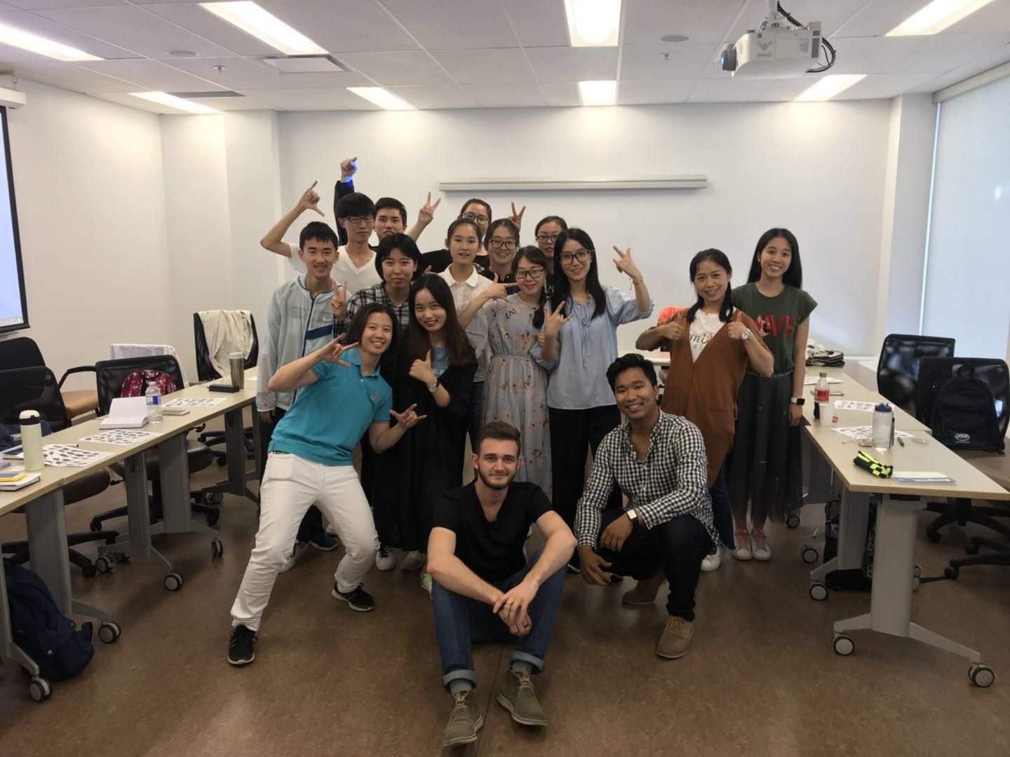 夏校英语学习的主题是多元文化。老师的教学非常注重整体性和个体差异,整个一周词汇学习和实践练习结合,难易结合,将多媒体手段融入教学,大大开拓了我们的视野,让我们在快乐中学习。我们的英语老师Luke还邀请他的双胞胎哥哥Nathan来和我们分享关于幼儿教育的经验。课堂上游戏式学习把多个人的智慧叠加在一起,很多事情就会豁然开朗。合作,可以让我们有更多的思绪,从他人身上获得启发,产生新的想法。我们在了解了加拿大的多元文化背景和基础英语词汇后,运用学习的创作英文诗技巧以及专业能力,结合电脑等多媒体手段制作了属于我们自己的多元文化海报。最难忘的一堂课是美式手语课,上课的老师虽然有口语表达的缺陷,性格却活泼开朗,明媚的笑容点燃了整个课堂氛围。我们在学习了如何用手语表达26个英文字母以及简单的礼貌用语之后,分组进行传话游戏,既巩固提高了手语表达能力同时也增强了团队凝聚力。总得来说,英语课的学习让我充分感受到了这里课堂学习的开放和包容,让学生们在做中学,玩中学,不断尝试探索新的知识,给我们带来了独特的课程体验。