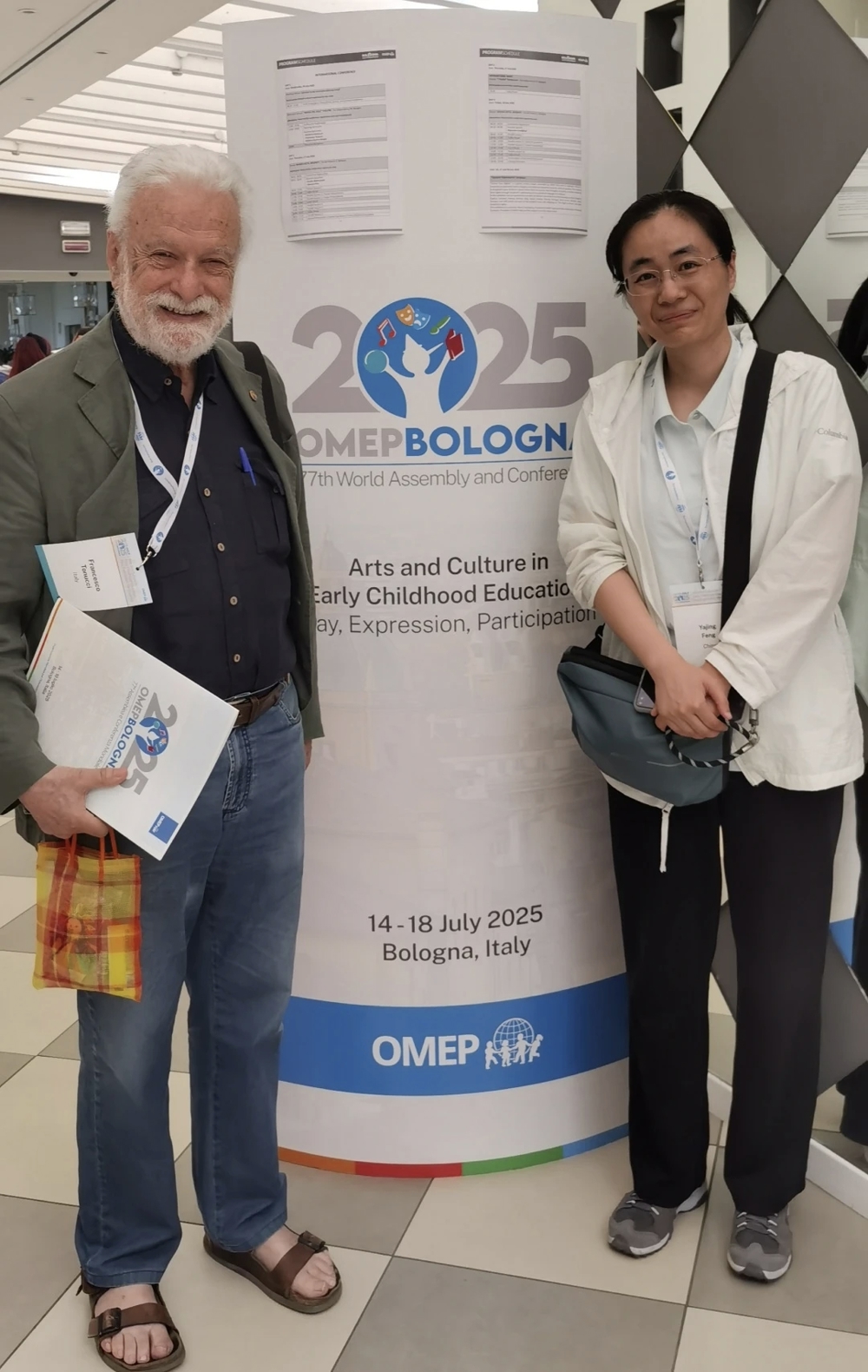 2025年7月14日至18日,第77届世界学前教育组织(OMEP)国际学术研讨会在意大利博洛尼亚隆重举行。本届OMEP大会以“艺术与文化在学前教育中的作用:游戏、表达与参与”为主题,汇聚了来自全球54个国家和地区的700多名学前教育研究者、政策制定者、一线教师及教育机构代表,共同探讨全球学前教育发展的新理念、新实践和新趋势。买球赛的app官网附属教育幼儿园冯雅晶老师以“民间艺术在幼儿园课程中的传承与创新”为题,向来自全世界五大洲的业界同仁,讲述“教育幼儿园的故事”。