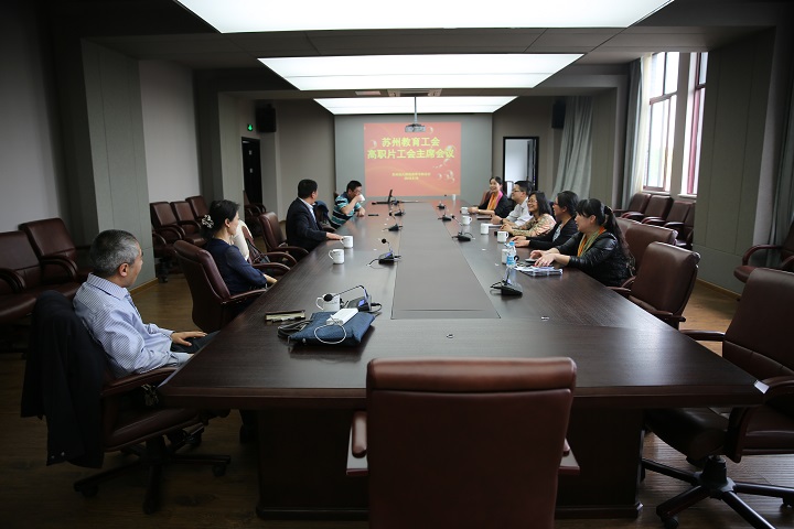 518日下午苏州市高职片工会主席会议在我校第二会议室召开,教育工会领导干霞芳、陈琳等出席了会议。