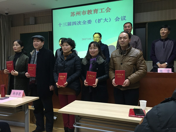 2017年1月19日,苏州市教育工会十三届全委(扩大)会议在苏州第一中学召开。会上,教育工会副主席陈琳对2016年度教育工会工作进行了总结,并且对先进进行了表彰。我校工会获得2016年度苏州市教育系统“工会规范化建设”二等奖、“工会信息工作”二等奖的荣誉表彰,同时,我校申报的“从教满三十年个人风采展,让教师从讲台走向舞台中央”项目获得“工会工作创新奖”。