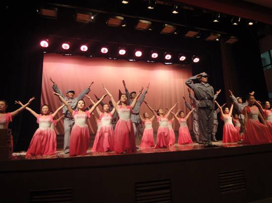 2012129晚,在校本部演出厅,我校学生社团以“青春、责任与梦想”为主题进行了汇报演出,以此纪念“一二·九”运动。整场汇报演出精彩纷呈,吉他社的《咸鱼》、拉丁社的《蜕变》、魔法英语社的《I Lay My Love on You, I Love China》、朗诵社的《青春》、街舞社的《Dancing Forever》、话剧社的《雨巷》、民乐社的《南泥湾》、嘻哈社的《TL Show》、舞剧社的《闪闪的红星》等节目,既紧扣主题,又突出专业特色,深受同学们欢迎。最后主持人总结,只有肩负责任才能让我们的青春脚踏实地,只有追逐梦想才能让我们的青春灵动飞扬!希望广大青年学子珍惜青春,勇担责任,追逐梦想,做一个无愧于时代的青年!