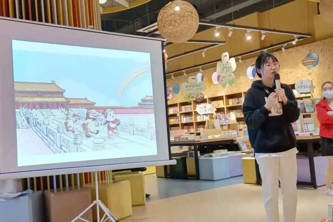 首先林雅芬同学向小朋友们介绍了有关故宫的知识,然后尉盈、王梦月同学一同为小朋友们讲述了故事的内容。