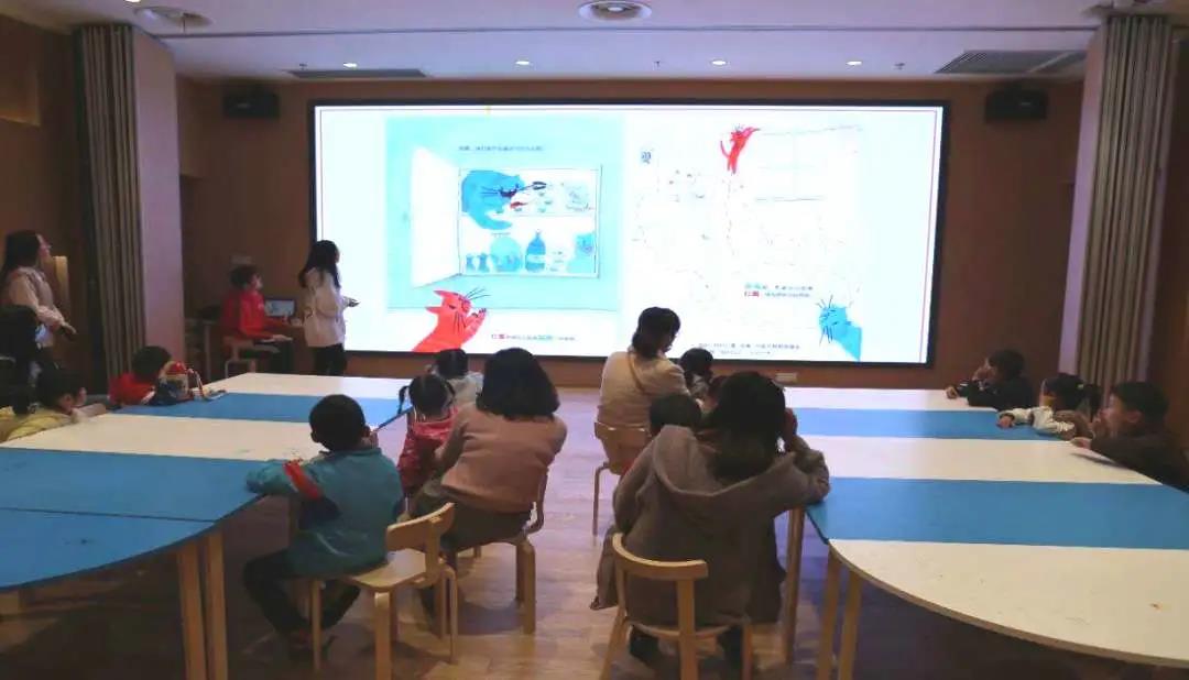 首先,故事姐姐为小朋友们讲述了绘本内容,并在讲述过程中提出问题,意在让孩子们在绘本故事中感受朋友的意义。
