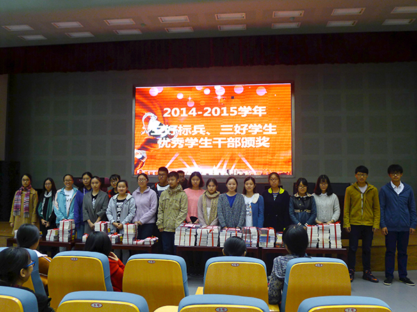 11月12日,我校第19届读书节开幕式在行政楼报告厅隆重举行。副校长郝云亮,学工处主任肖蕾,图书馆馆长张卫平,学工处副主任张鹏及图书馆工作人员,2014-2015学年三好标兵、三好学生、优秀学生干部,图书馆照片墙获奖学生代表,各年级图书管理员,图书馆志愿者等共计260余人参加了开幕式。开幕式由张鹏老师主持。