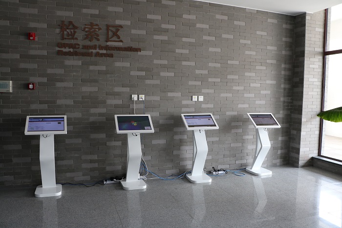 为了使广大师生读者在馆内体验更便捷的查询与检索服务。图书馆新引进四台全新的服务设备——触摸式检索机,放置于图书馆一楼检索区,替换原有的台式电脑检索机。读者可利用该设备点击浏览器,登陆图书馆书目检索系统(OPAC系统),迅速地查询自己所需书目的馆藏信息。此次设备安装调试后,已投入运行一段时间,学生普遍使用热情高涨,使用体验反馈良好。现诚邀全校师生多到图书馆,体验触摸式检索机带来的新感受、新气象,也请各位读者在使用设备过程中有任何建议和意见及时反馈,图书馆恭候您的到来。