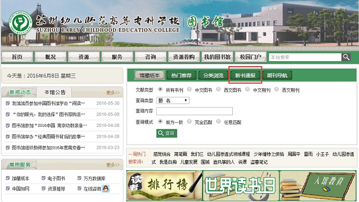 图书馆圆满完成2016年度南京春季馆藏图书展销会采访图书上架工作 来源:本站原创 发布时间:2016-06-08 13:53:37 浏览次数: 次 【字体:小 大】 图书馆近日完成了2016年度南京春季馆藏图书展销会采访的5474册图书的编目、上架工作。馆藏地主要分布在一楼专业馆藏区、绘本区、自然科学馆藏区,二楼社科馆藏区等位置。欢迎各位师生在图书馆主页——新书通报入口检索并来馆借阅。 分享到: 【打印正文】