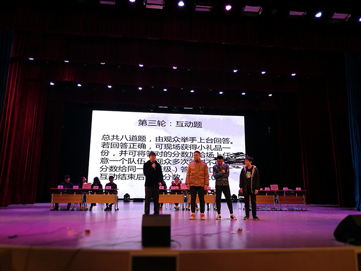 历经预选赛、初赛的层层选拔,最终,学前一系、学前二系、艺术系共三支代表队进入了总决赛。本次决赛分为必答、抢答、互动、风险四个环节。竞赛题目涵盖校史、校情、十九大知识、时事、专业知识、文学常识、生活常识等类别。