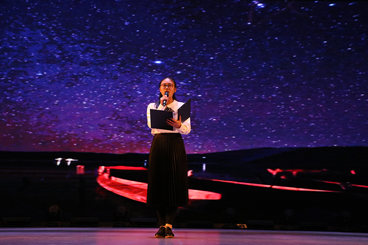 在“经典书籍进班级”活动中表现优秀的5名同学为大家演讲了她们的读书心得报告,分别为2系学前173班胡吟秋的《逃出未来的拖鞋》;2系早教171班唐鑫芸的《不惧死,不惧生》;1系学前176班顾舒晴的《千年的呼唤》;1系学前171班杨陆娇的《诗词的力量》;1系学前175班杨逸群的《去畅饮阳光吧》,报告中她们分享了各自在阅读中的感悟体会,传递了读书的力量。在“朗读者计划”中表现优秀的邵以箐同学诵读了《再别康桥》,让同学们感受到了经典文学的美妙韵律。在经典诗文诵读大赛中荣获一等奖的163班全体同学,以一篇气势磅礴的《少年中国说》为全场带来了一场视听盛宴。最后,叶雨洁同学作为代表对“24小时读书计划”活动进行了总结,通过短片,让同学们感受到了书籍中蕴含的爱的力量。