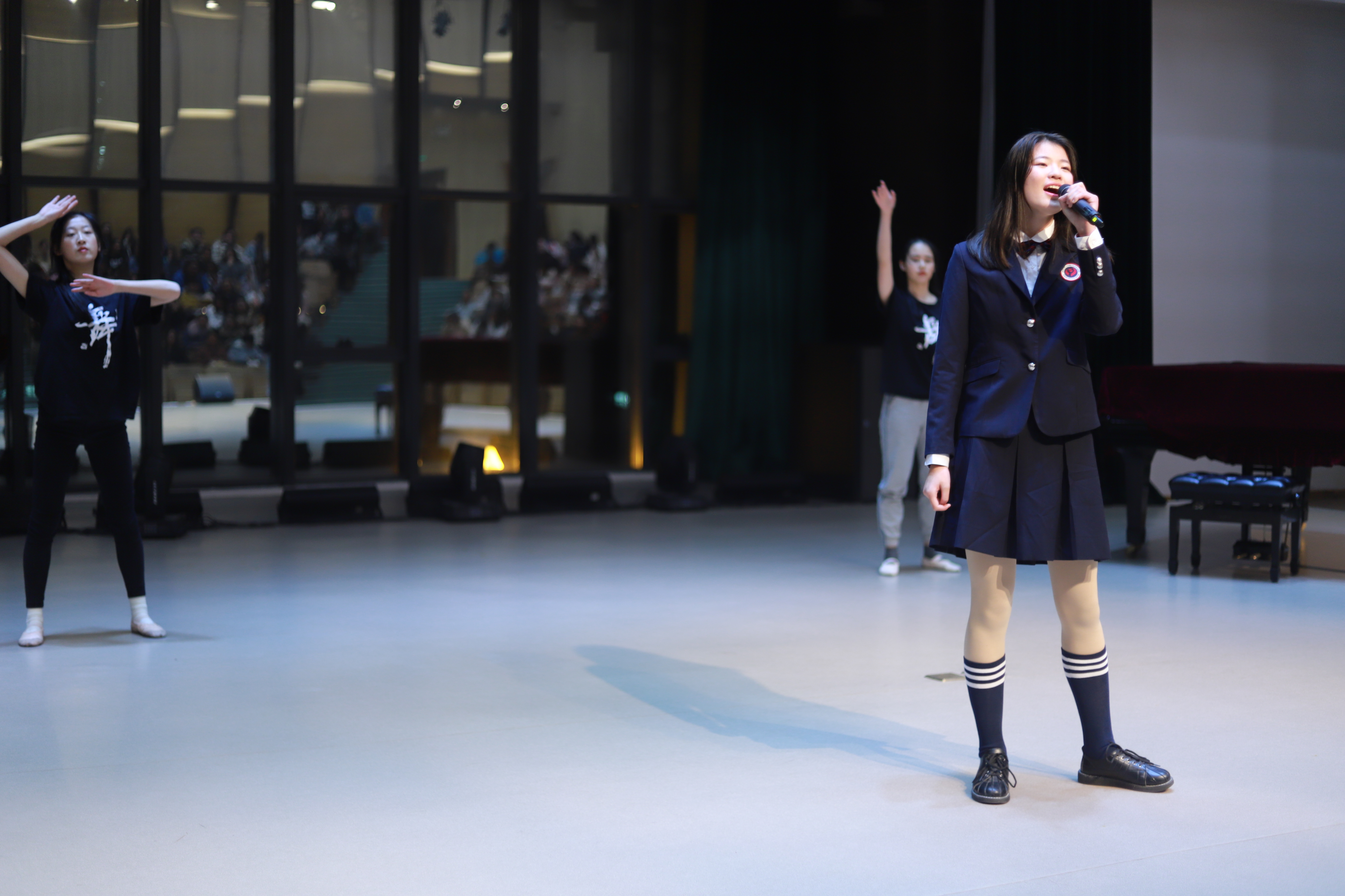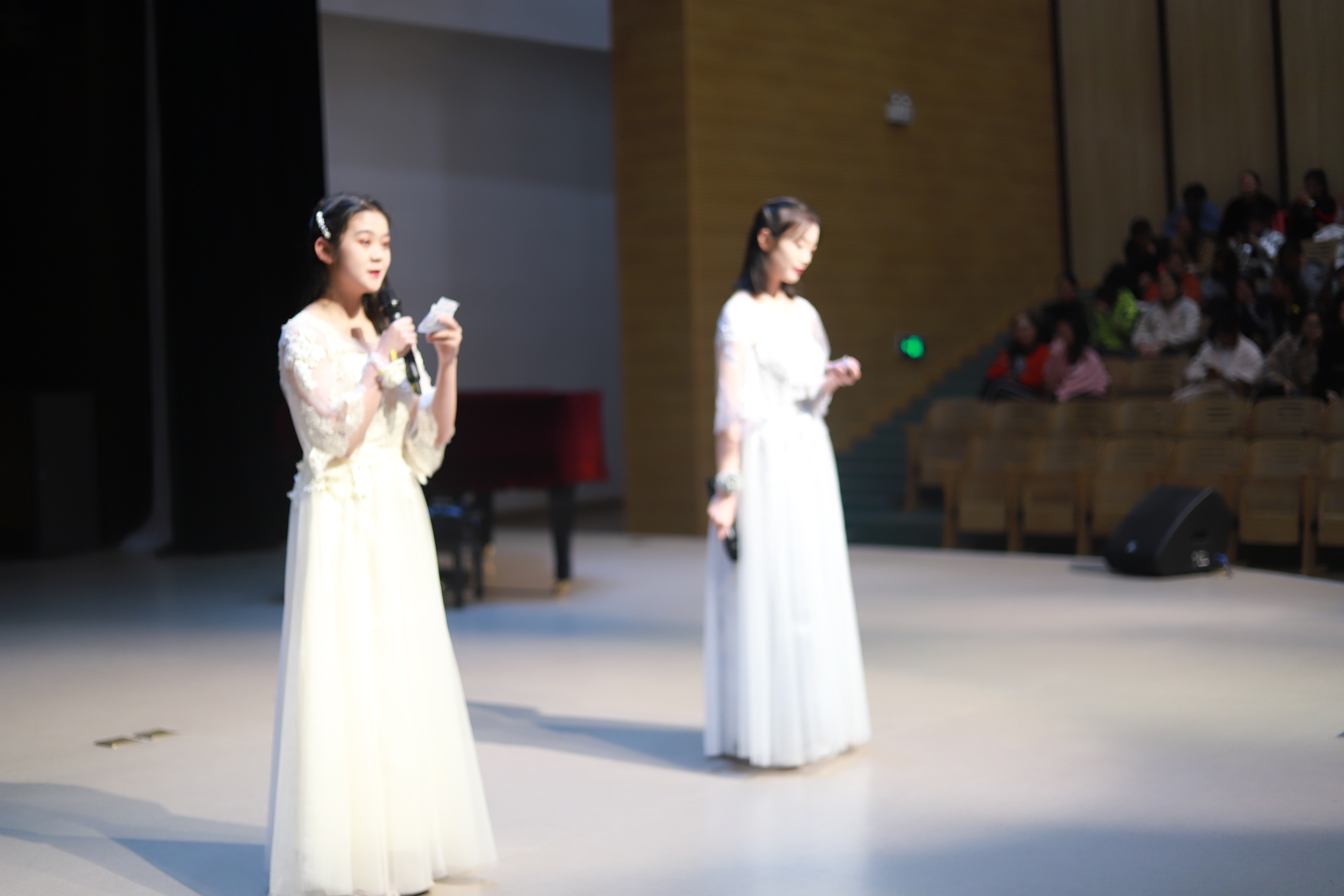 紧接着,186班的谢喆、陆凯欣同学吟唱《长恨歌》踏入场内。在她们的歌声中,大家看到了了历史门扉缓缓打开,厚重的文化穿过长长的时光,在我们面前演绎着一个朝代的繁荣和落幕。