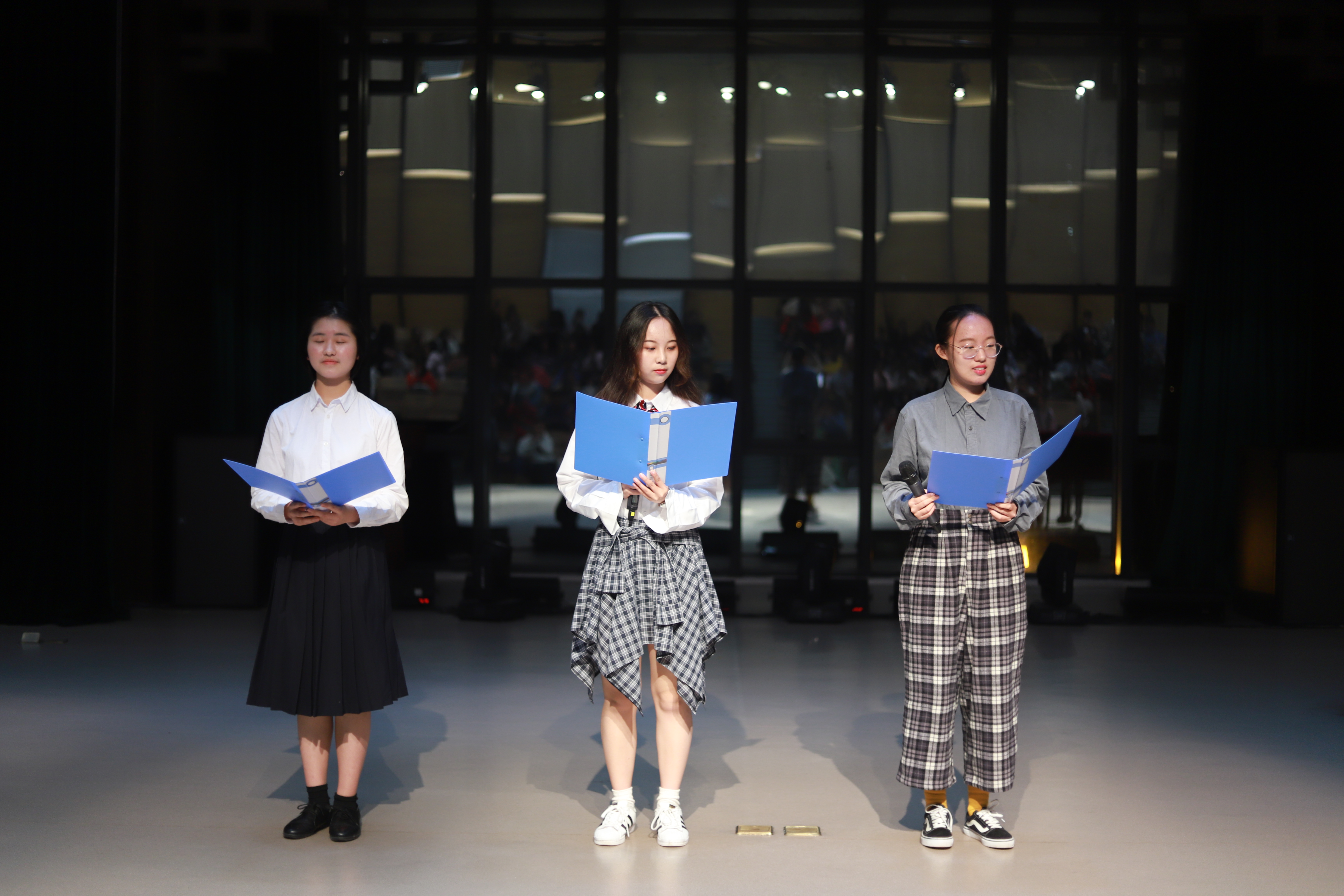 接下来是164班罗心意、166杜圆圆、王艺颖带来的现代诗朗诵《锦绣苏州》。改革开放展开了新中国的蓝图,故乡好,国家就好,二者相辅相成。一时间,大家情绪激昂,深受感动。