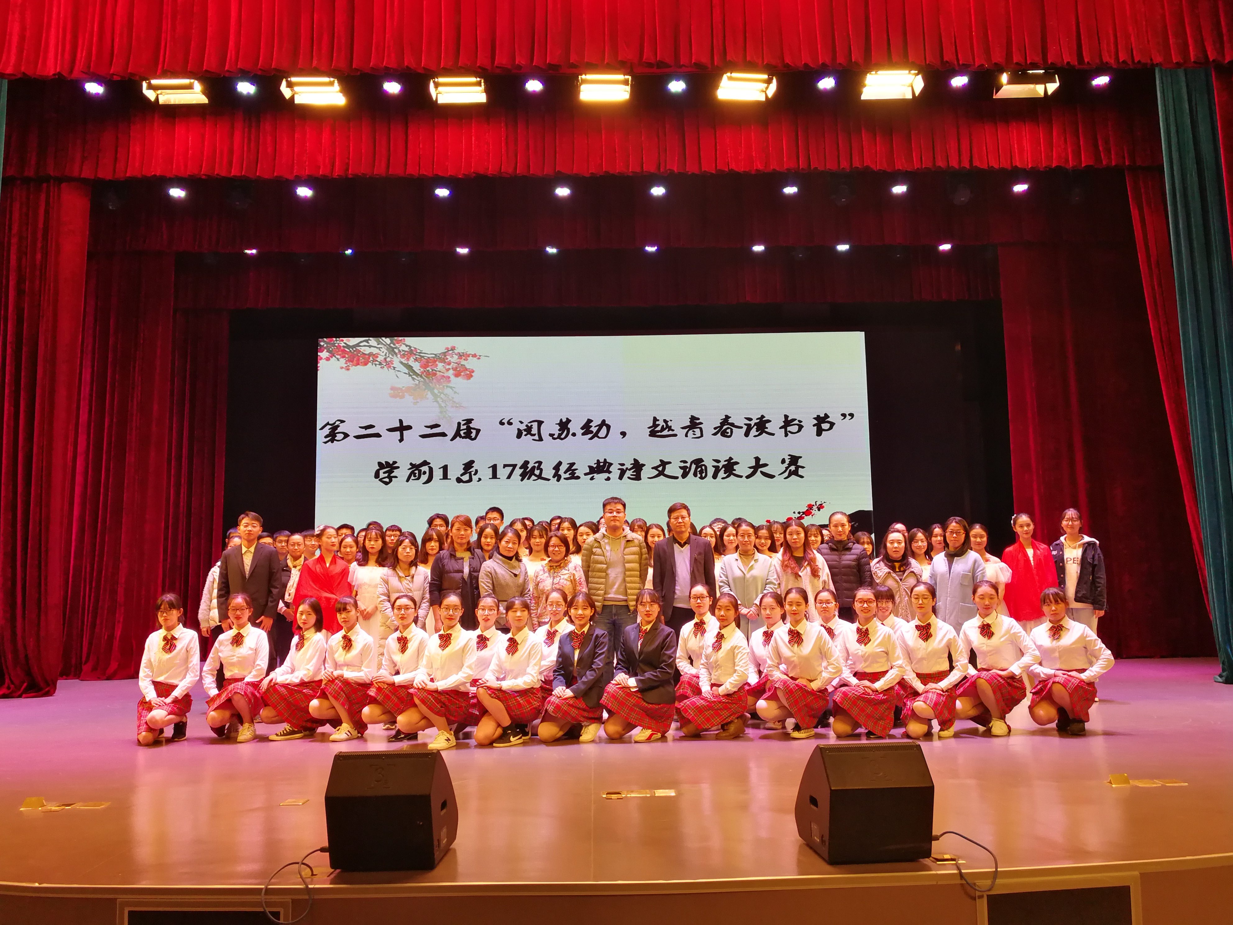 2018年11月21日下午,学前1系17级在校演出厅举行了经典诗文诵读大赛。此次活动是第二十二届“阅苏幼 越成长”读书节系列活动之一,由校基础部和语文教研室组织,17级语文备课组倾情打造。