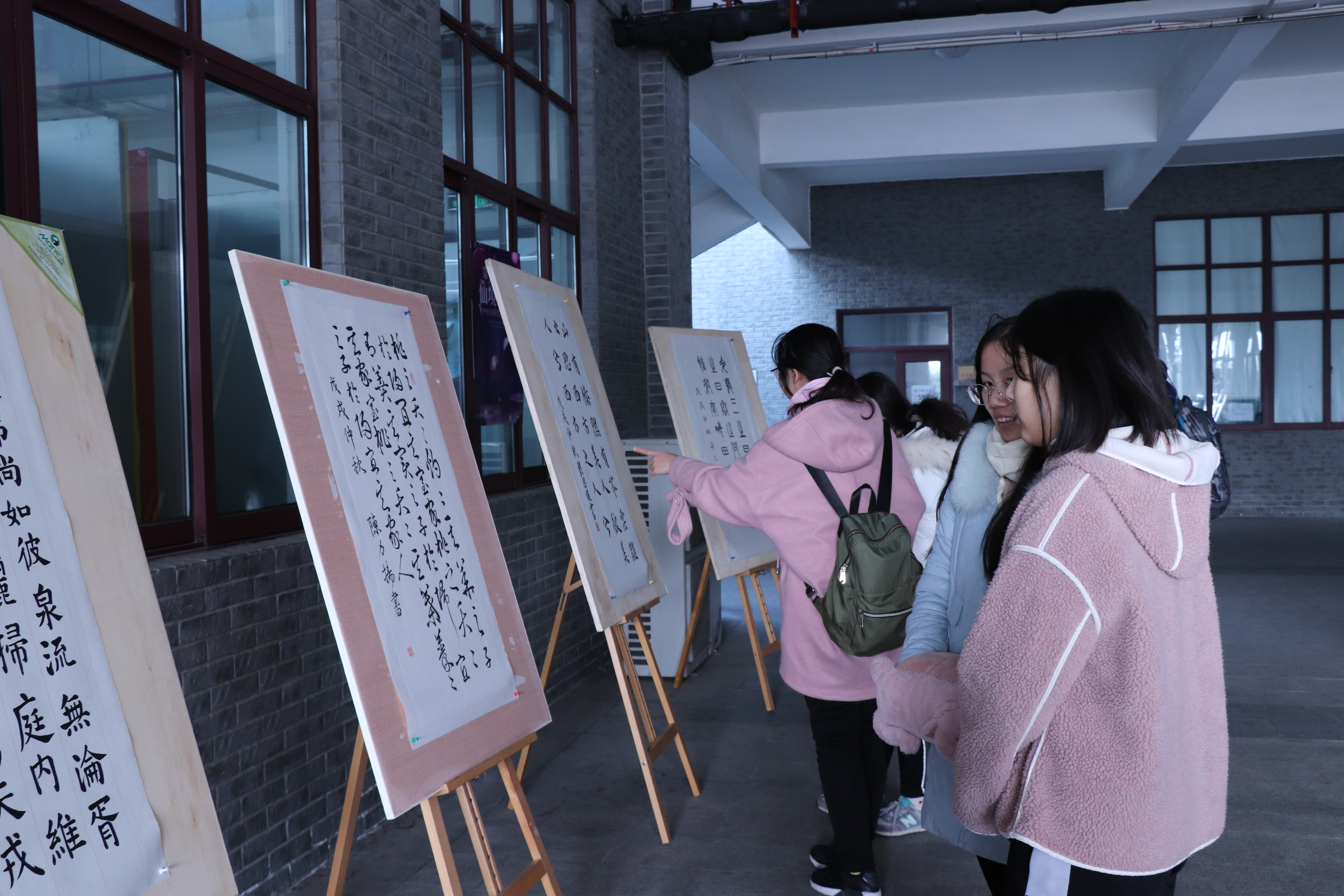 明窗净几,清茶一杯,读书之暇,在悠闲的心境里从容命笔,优游不迫;若遇纸笔相得,心手双畅之时,率性涂抹之中,产生佳作。12月,我校图书馆与书画社举办了第二十二届读书节之“执笔之手 与书为友”的书法展活动。本次活动面向全校学生开展,征集以《诗经》为主题的书法作品。