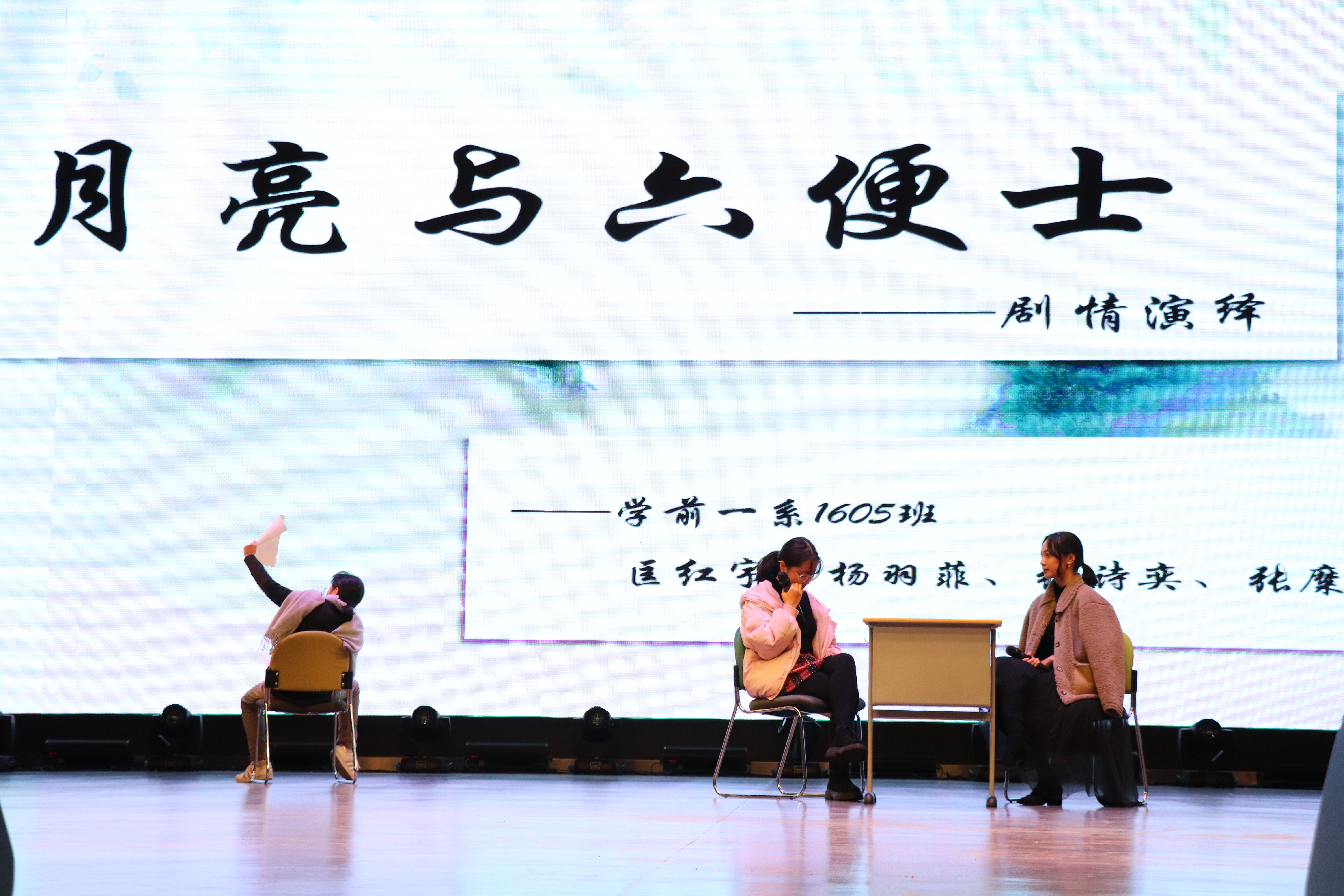 接着165班张诗奕等带来的《月亮与六便士》采用了情景剧表演的方式,为我们直观地描绘了书中所说的理想与现实的矛盾,艺术与生活的冲突,精神与物质的抉择。