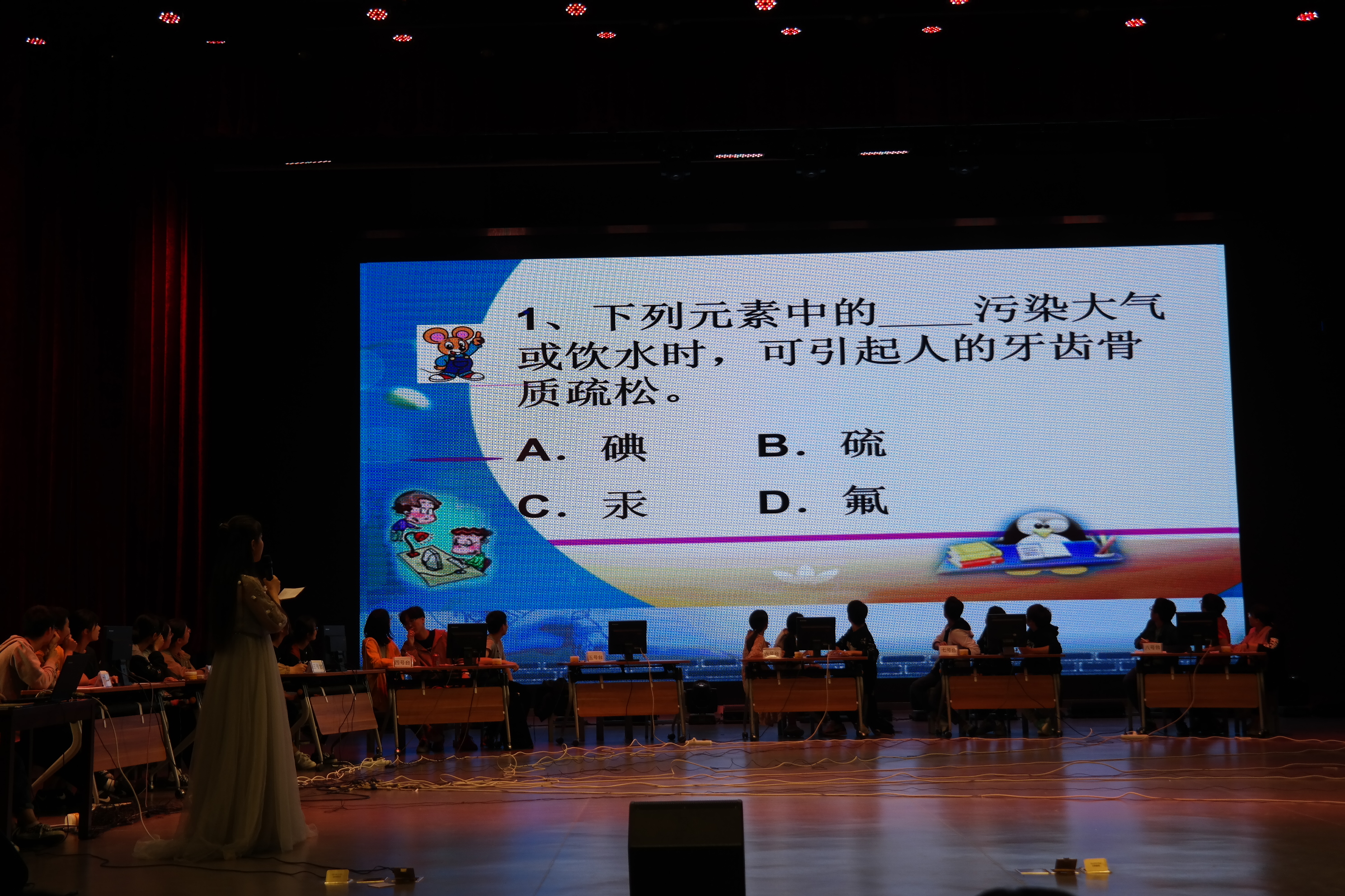 2018年5月23日下午15:30-17:00,在基础部的指导下,理科教研室在校演出厅向学前1系和2系16级同学开展了“理科(数学、物理、化学、生物)知识竞赛”活动。活动前期,理科教研室在筹划和编排此项活动上花费了大量的时间和精力,力求将数学、物理、化学、生物、医药等知识与趣味集于一体。在活动过程中,选手和场下的同学情绪盎然,气氛热烈,答题积极。这种形式的第二课堂起到了普及理科知识的目的,效果很好。通过两轮(预、决赛)六环节(必答题、抢答题和风险题)的比赛,决出了一等奖两队,二等奖三队、三等奖五队和最佳选手两名。具体情况如下:
