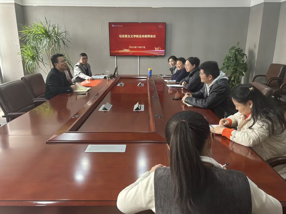 2025年11月27日中午,马克思主义学院在照怀楼第三会议室召开全体教师会议。校党委书记郝云亮出席会议并作指导讲话。会议由马克思主义学院副院长邹学主持,学院全体教师参加。